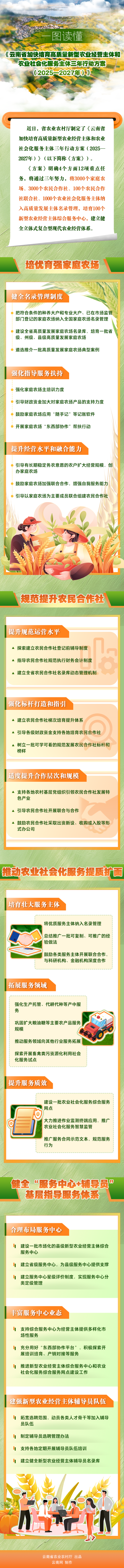一圖讀懂《云南省加快培育高質量新型農(nóng)業(yè)經(jīng)營主體和農(nóng)業(yè)社會化服務主體三年行動方案(2025—2027年)》