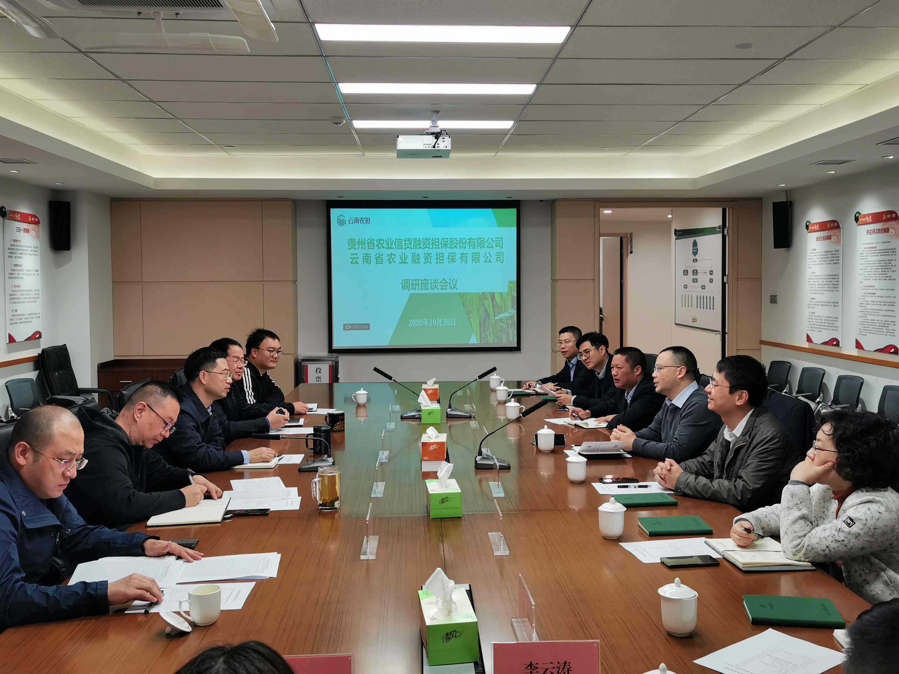 10月19日-20日,貴州農(nóng)擔(dān)公司董事長(zhǎng)羅道斌、副總經(jīng)理唐方宇、風(fēng)控總監(jiān)祖文周一行赴云南農(nóng)擔(dān)調(diào)研交流。云南農(nóng)擔(dān)公司董事長(zhǎng)郭影、總經(jīng)理杜開(kāi)波、副總經(jīng)理廖寅皓率農(nóng)擔(dān)一部、風(fēng)控部、戰(zhàn)略部與貴州農(nóng)擔(dān)公司進(jìn)行了交流座談。