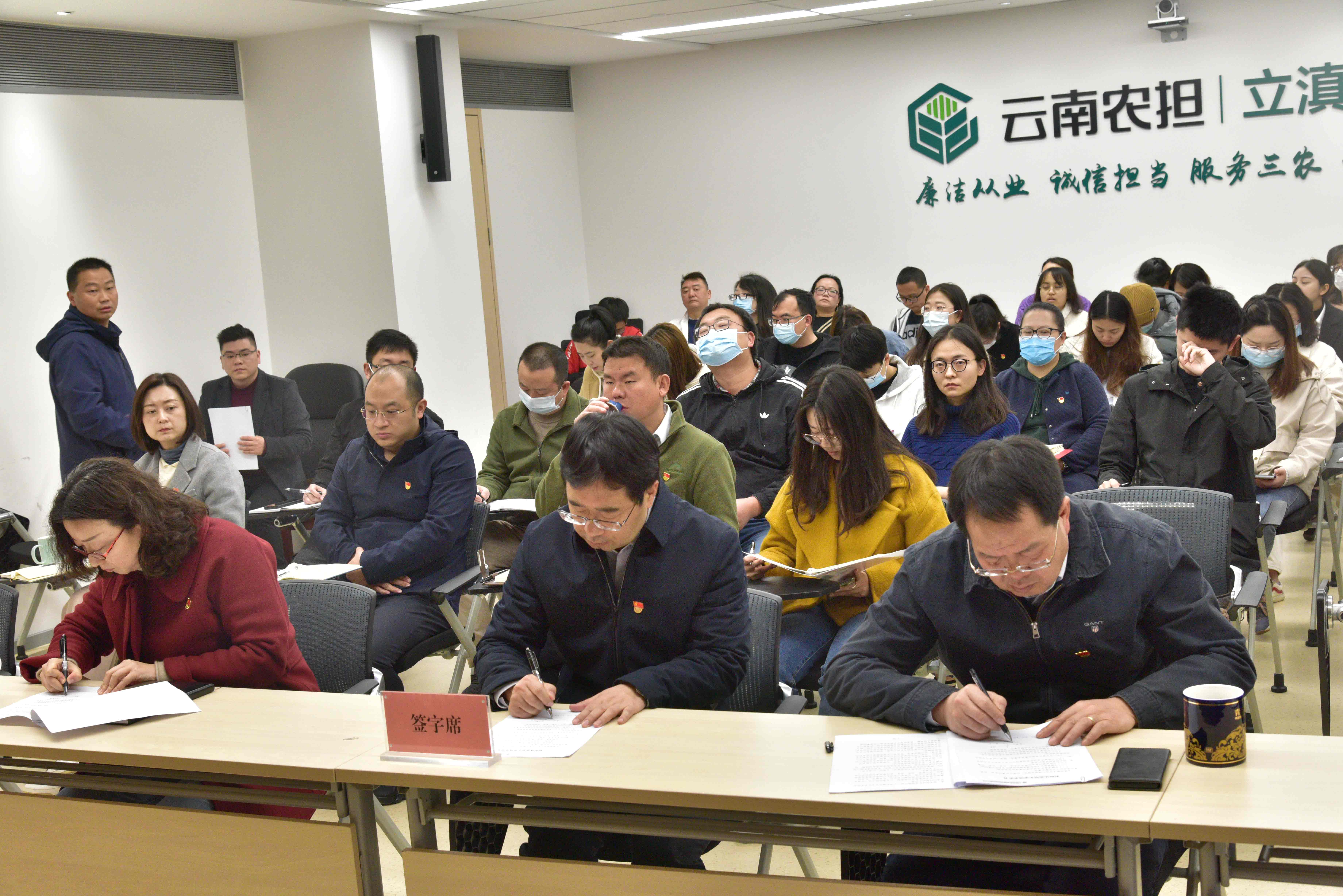 宣講結(jié)束后,組織員工簽訂了《農(nóng)擔(dān)從業(yè)禁止事項(xiàng)承諾書》。隨后,李建華同志作提升員工廉潔和服務(wù)意識(shí)培訓(xùn),他在培訓(xùn)會(huì)上講到,只有在思想上勤自警、在工作上常自律、在生活上多自重、在作風(fēng)上重自省,才能強(qiáng)化員工廉潔自律意識(shí),提升員工服務(wù)水平。