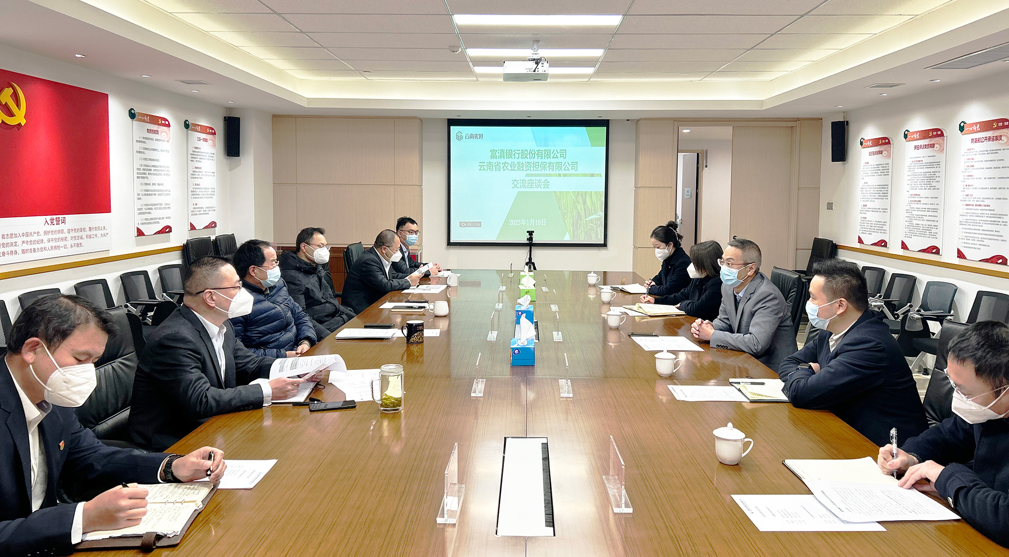 2023年1月10日,云南省農(nóng)業(yè)融資擔保有限公司與富滇銀行股份有限公司召開銀擔合作座談會。富滇銀行黨委委員、副行長納然,公司董事長杜開波、總經(jīng)理李世偉、副總經(jīng)理廖寅皓出席會議。會議圍繞2023年雙方合作目標展開討論,并就推進下一步戰(zhàn)略合作達成共識。